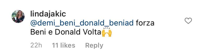 Fillimisht ajo ka shpërndarë postime të Olti Currit dhe Fatma Haxhialiut, të cilët vënë në dukje presionin e banorëve për raportin që Beniada ka me Donaldin.