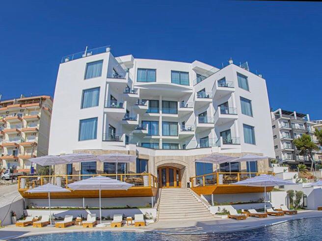 This is a 4-star Harbor Hotel in Saranda. As you can see from the views provided by shqiptarja.com the hotel is luxurious, with a restaurant and several rooms overlooking the sea.