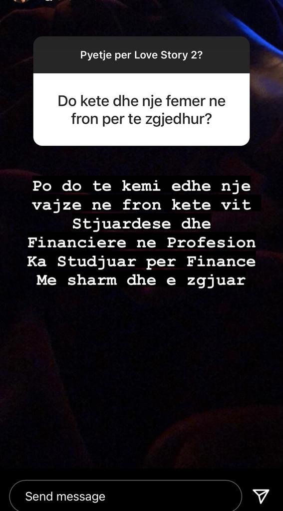 “Po do të kemi edhe një vajzë në fron këtë vit, stjuardesë dhe financiere në profesion, ka studiuar për financë. Me sharm dhe e zgjuar”, ka shkruar ajo, teksa një ndjekës e pyet nëse “do të ketë një femër në fron për të zgjedhur”.