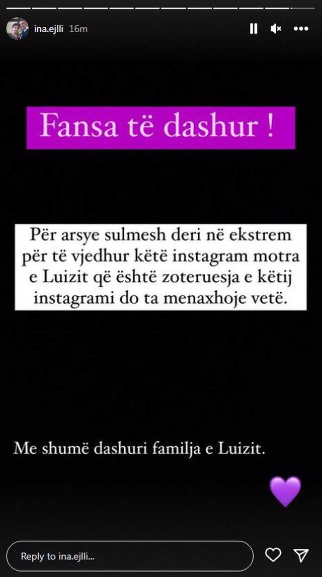 Motra e Luizit, Ina e ka marrë në dorë Instagramin e të vëllait dhe ka ndryshuar emrin duke vendosur emrin e saj.