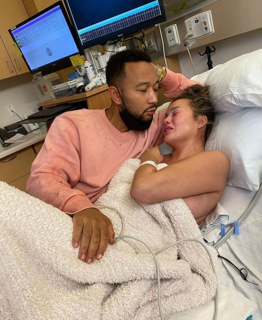 Asokohë ishte vetë Chrissy që e dha lajmin e hidhur, duke publikuar disa foto të trishta me të voglin në krahë.