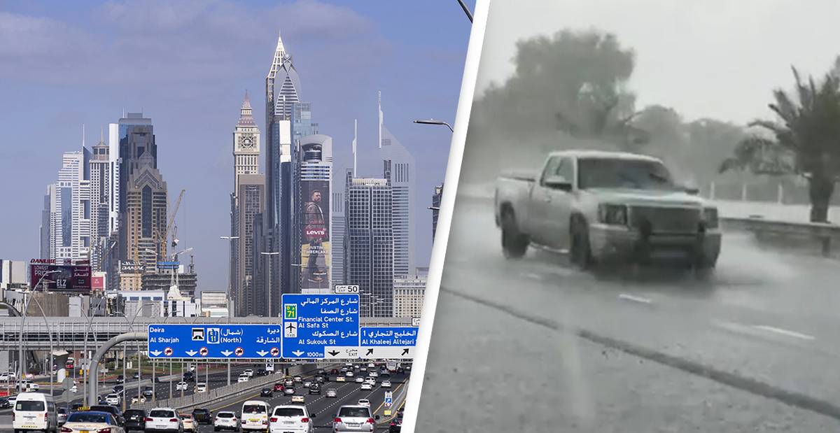 On Sunday, the UAE national weather service released video footage of heavy rainfall. Rain is stimulated using the technology of drones that emit electric charges into the cloud, so that they accumulate to release precipitation.