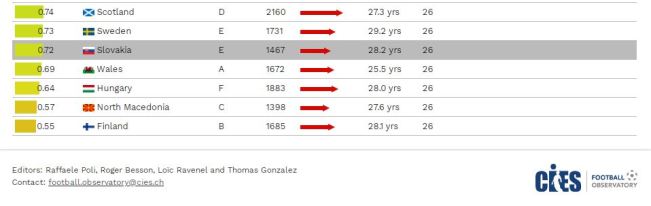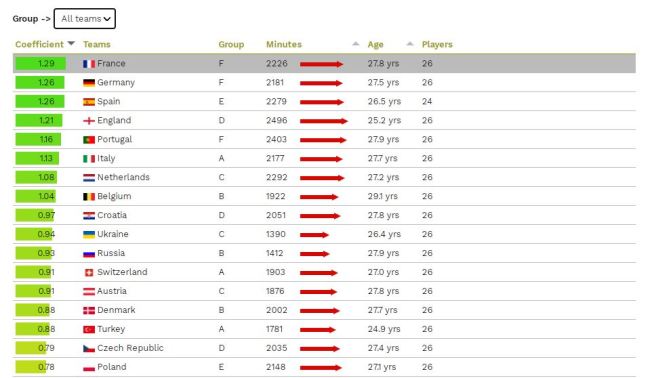 According to the CIES Football Observatory Weekly Post, no. 340, the estimates are supported by calculating the average sporting level of the clubs in which the players selected in the national teams that will take part in the European competition this summer play,