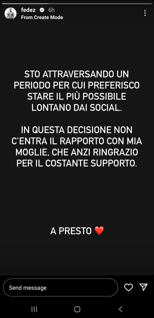 Së fundmi këngëtari i njohur italian Fedez ka thyer heshtjen në rrjetet sociale ku ka mohuar zërat për një krizë me blogeren Chiara Ferragni.
