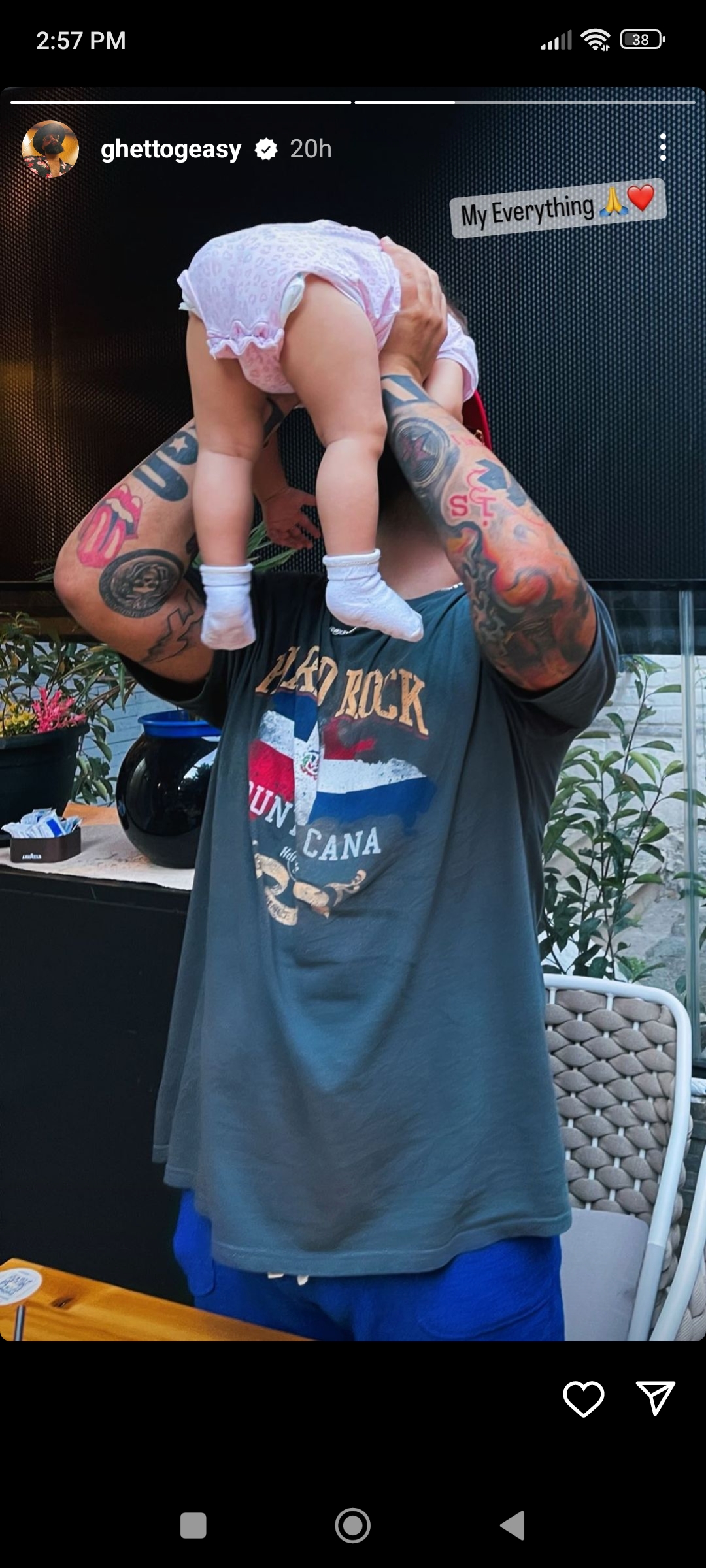 Krahas postimit duke mbajtur në krah të voglën e tij Geti shkruan: