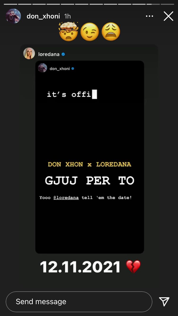 E vetë reperi duket se na e aprovoi këtë gjë disa ditë më parë me anë të një Instastory. Teksa ka ripostuar një video të Lorit teksa improvizon në makinë këngën e tij, Don Xhoni ka shkruar: