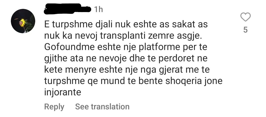 “Gofoundme eshte nje platforme per te gjithe ata ne nevoje dhe te perdoret ne kete menyre eshte nje nga gjerat me te turpshme qe mund te bente shoqeria jone injorante“.