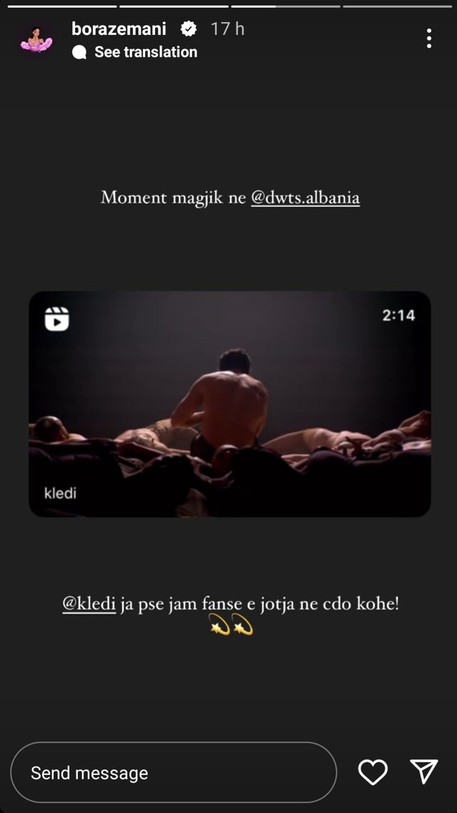 Kanë qenë të shumta komentet dhe vlerësimet e personazheve VIP për të e nuk mund të mungonte as komenti i Borës, e cila ka ripostuar një video të performancës së tij dhe ka shkruar vlerësimin e madh që ka për të.