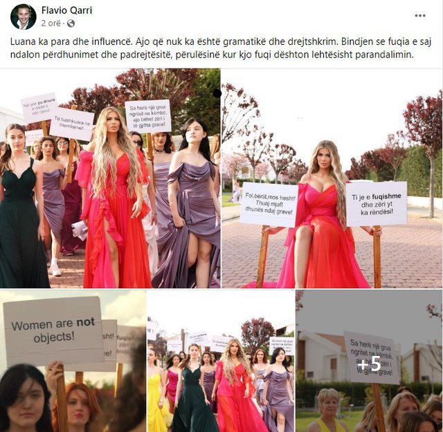 “Luana ka para dhe influencë. Ajo që nuk ka është gramatikë dhe drejtshkrim. Bindjen se fuqia e saj ndalon përdhunimet dhe padrejtësitë, përulësinë kur kjo fuqi dështon lehtësisht parandalimin”, shkruan Flavio Qarri.