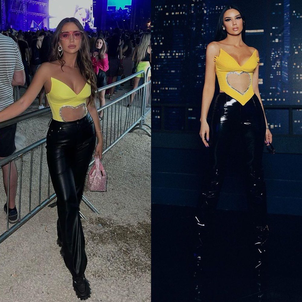 Pantollona lëkure dhe një korset ngjyrë të verdhë me prerje në formë zemre, Bora i pati veshur në një nga puntatat e ‘’Për’puthen’.