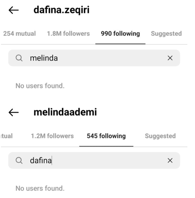 Për këtë referencë u mor Instagrami ku artistet nuk ndiqen më.