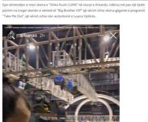 “Epo vëmendjen e mori skena e “Shiko Kush LUAN” në storyt e Arbanës, ndërsa më pas një tjetër postim na tregoi skenën e vërtetë të “Big Brother VIP” që sërish ishte skena gjigante e programit “Take Me Out”, që sërish ishte nën autorësinë e Luana Vjollcës.”