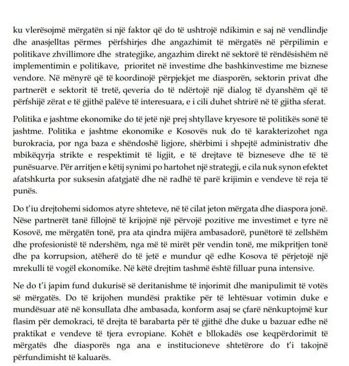 In this part, the Government of Kosovo aims to end the current phenomenon of ignoring and manipulating the diaspora vote. “Practical opportunities will be created to facilitate voting by enabling it in consulates and embassies, in accordance with what we mean when we talk about democracy, equal rights for all and based on the practices of other European countries. “The times of blockade or misuse of the diaspora by state institutions will finally be a thing of the past,” the government program said.