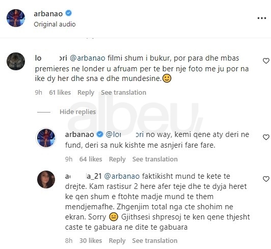 Por në këtë postim Arbana është përballur me akuzat e ndjekësve të cilët e quajnë mendjemadhe.