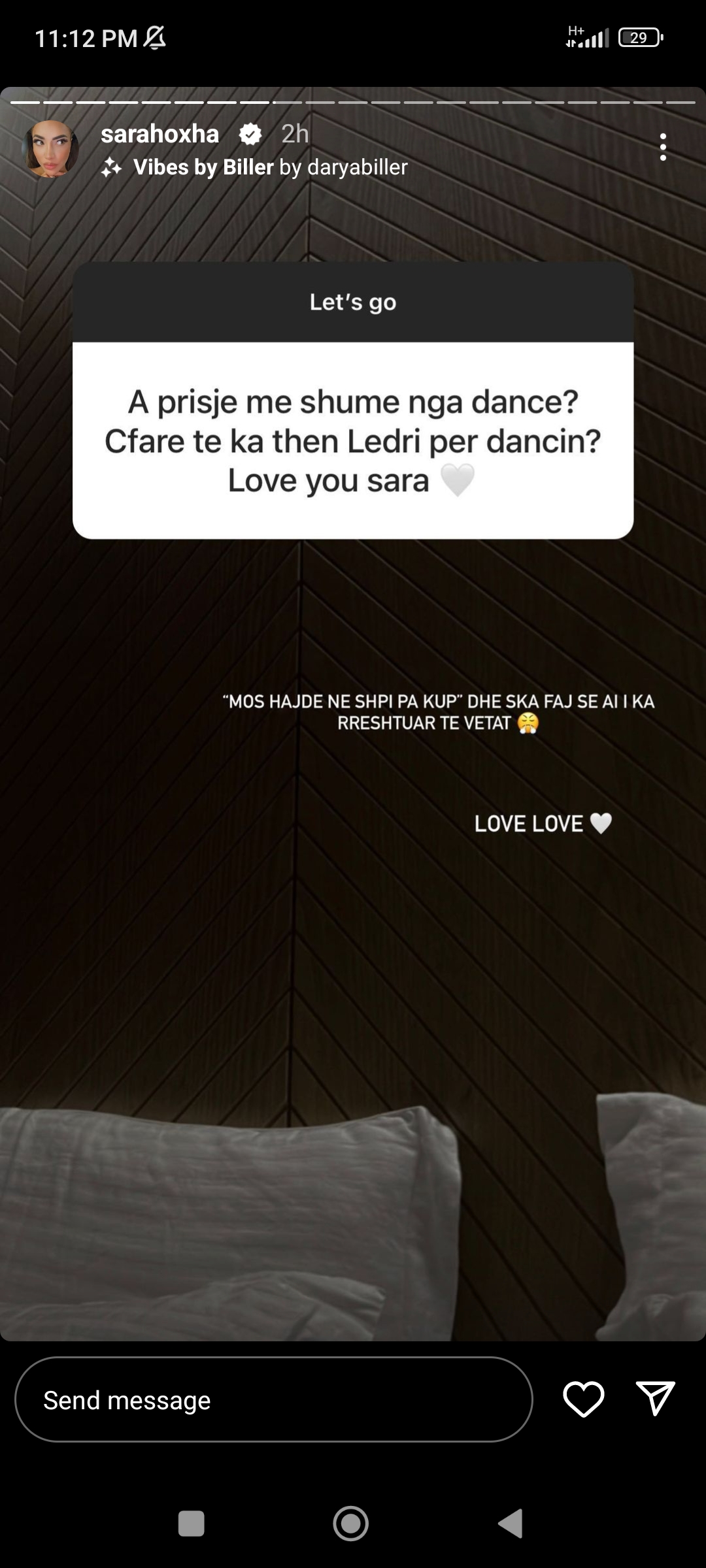 “‘Mos hajde ne shpi pa kup’ dhe ska faj se ai i ka rreshtuar te vetat. Love love“- shkroi blogerja.