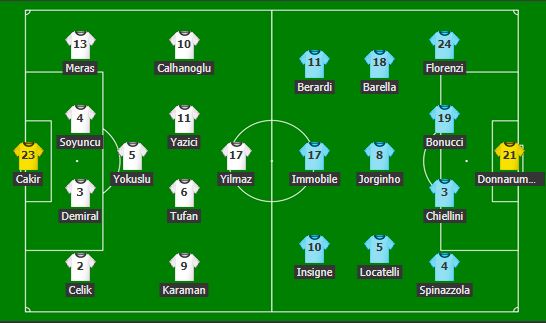 As for the official formations, both coaches, Mancini and Gynesh, have not preferred to make surprises, throwing on the field the headlines that were designed even earlier.