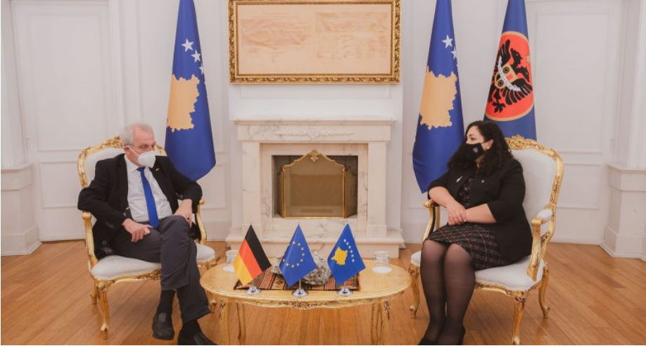 The President of Kosovo, Vjosa Osmani received today in a meeting, the Vice President of the European Parliament, Ranier Wieland and a delegation of the German-Kosovo Association.