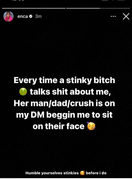 “Sa herë që një ***** e qelbur flet kot për mua, burri, babai dhe fiksimi i saj është në mesazhet e mia duke mu lutur t’i ulem në fytyrë,”