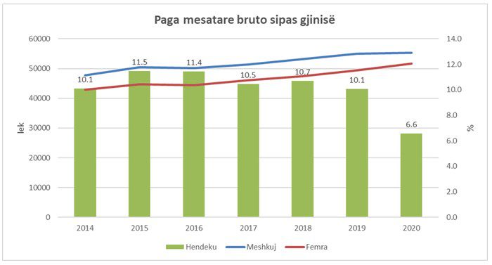 Although in a difficult economic year, due to the pandemic, women have managed to have higher salary increases than men, narrowing the gap between them in payments. INSTAT data showed that the average salary for women in 2020 reached 51.7 thousand ALL, marking an increase of 4.6% compared to the previous year. The average salary of men was 55.3 thousand ALL, marking a minimal increase of only 0.7% compared to the previous year.