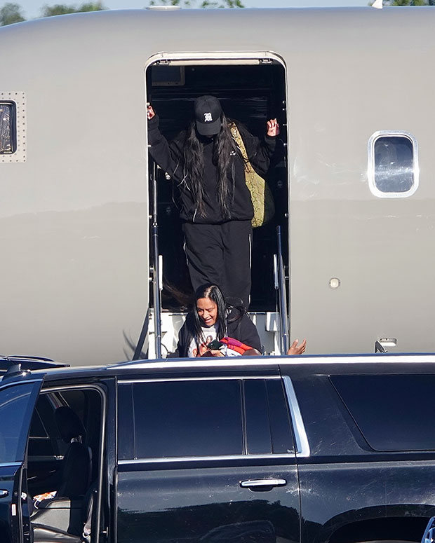 Këngëtarja dhe partneri i saj dukeshin shumë të qetë teksa u panë duke ecur nga avioni i tyre privat në një furgon të zi.