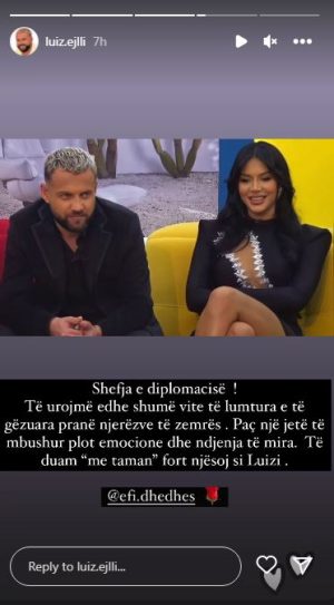 Personi që menaxhon llogarinë e tij i ka uruar Efit një jetë të mbushur me emocione dhe ndjenja të bukura, tek e ka quajtur ‘shefja e diplomacisë’, ashtu siç e quante Luizu brenda BBV.