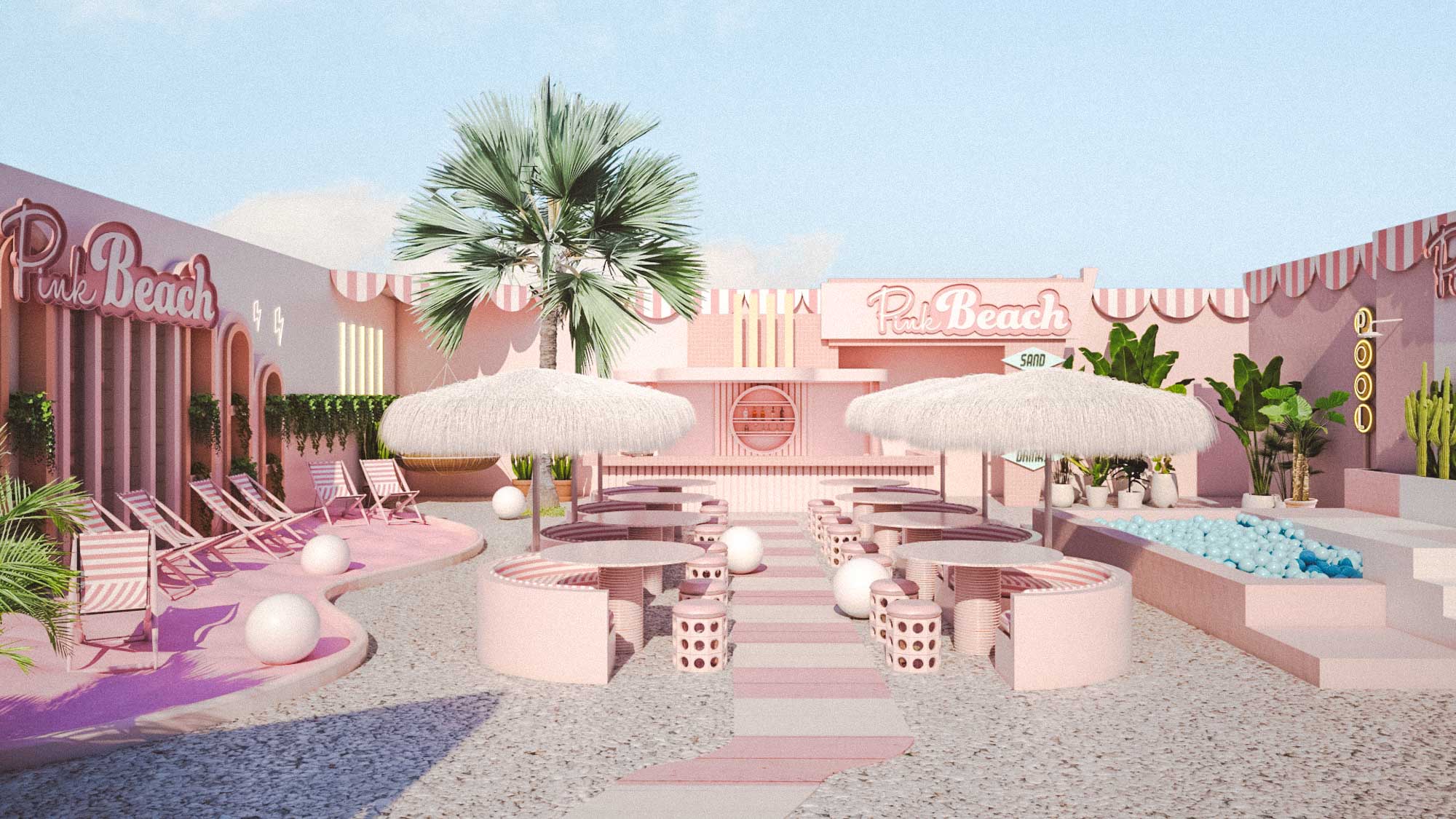 But the idea came from Sarah Mendes, the founder of WONDR, who during the health emergency felt the need to create a dream space, which would evoke, in a way, remote beaches and tropical paradises, temporarily inaccessible. It was said, it was done: an all pink beach was created and it is spectacular. Here you can relax and soak up the sun on the large terrace and order colorful cocktails and walk barefoot on the pink sandy beach.