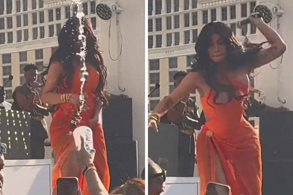 Cardi explained that during her performance in scorching Vegas heat, she asked the crowd to splash her with water but warned not to hit her face.