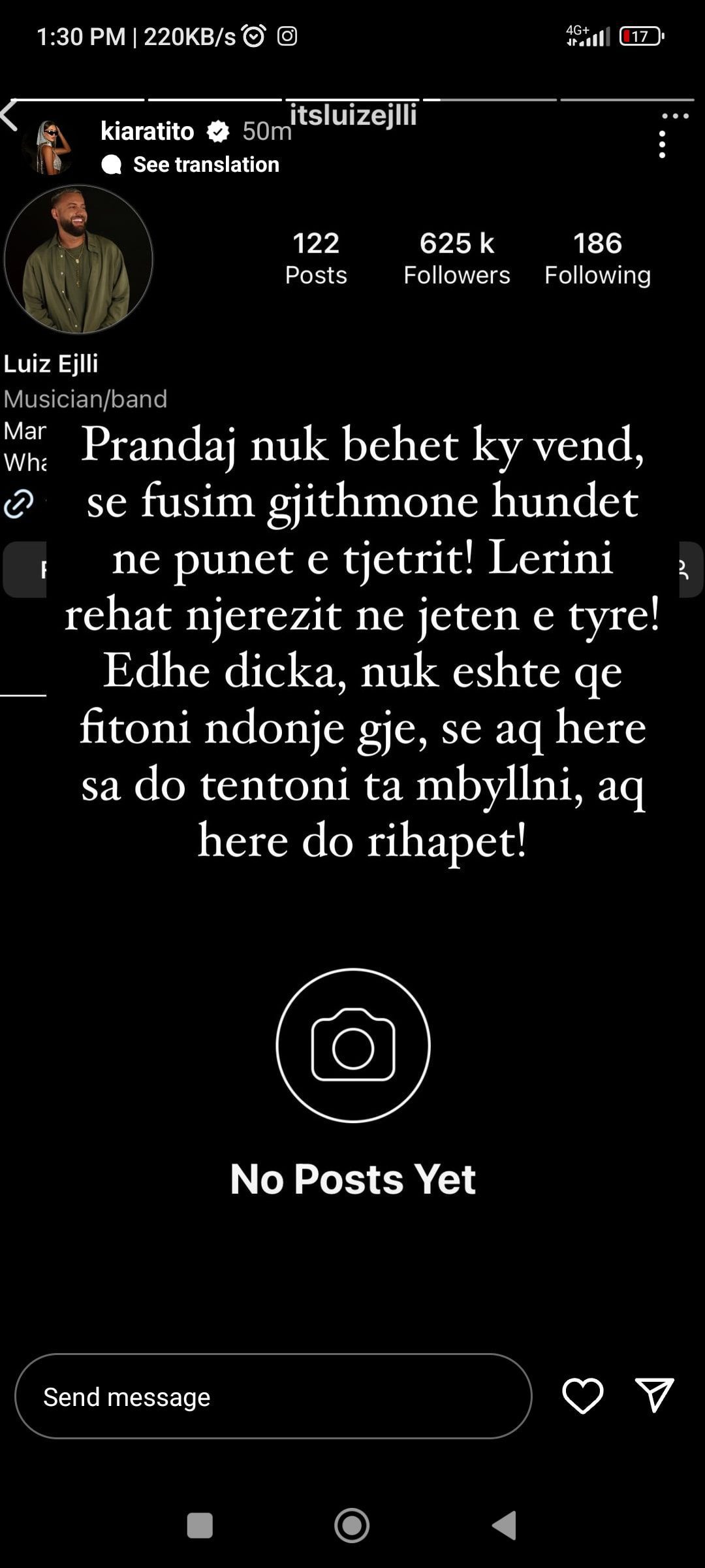 Një reagim e ka bërë edhe partnerja e tij, Kiara Tito, e cila në InstaStory shkruan: