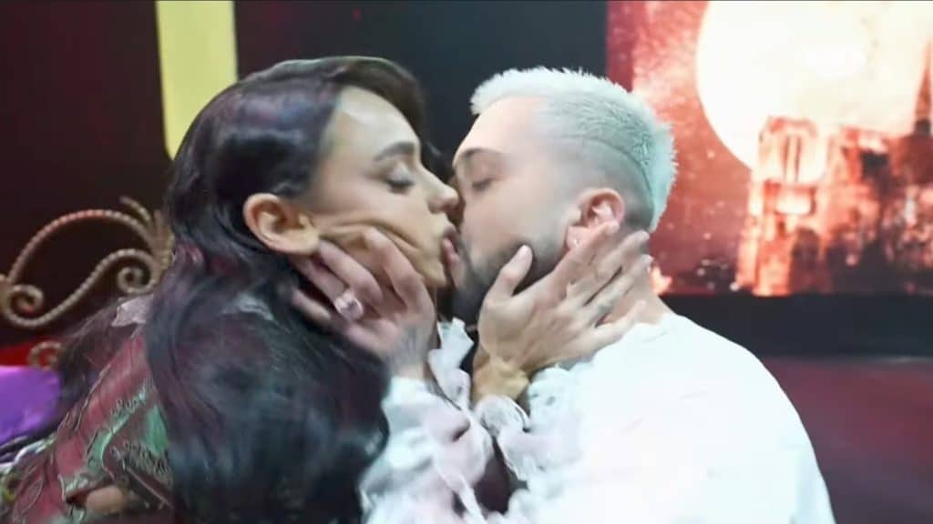 Teksa perfermuan një pjesë të shfaqjes “Notre Dame De Paris” dyshja shkëmbyen edhe një puthje në buzë, duke surprizuar banorët dhe publikun.