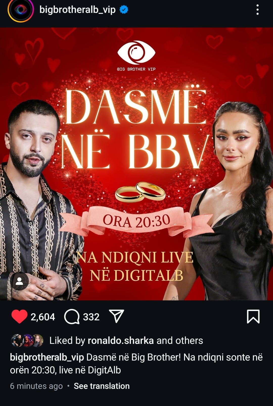 Dasmë në Big Brother VIP, sonte në 20:30“, thuhet në njoftim.