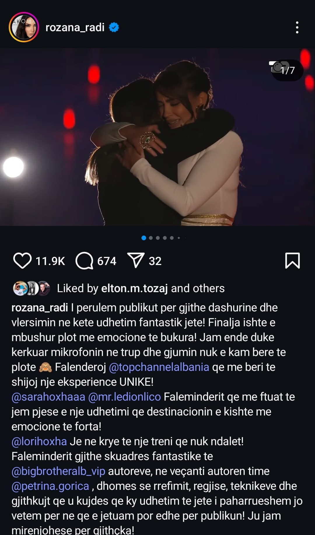 Në një postim emocional në Instagram, këngëtarja falenderoi publikun për mbështetjen e jashtëzakonshme gjatë gjithë rrugëtimit të saj, duke e përshkruar këtë eksperiencë si një “udhëtim fantastik jete”.