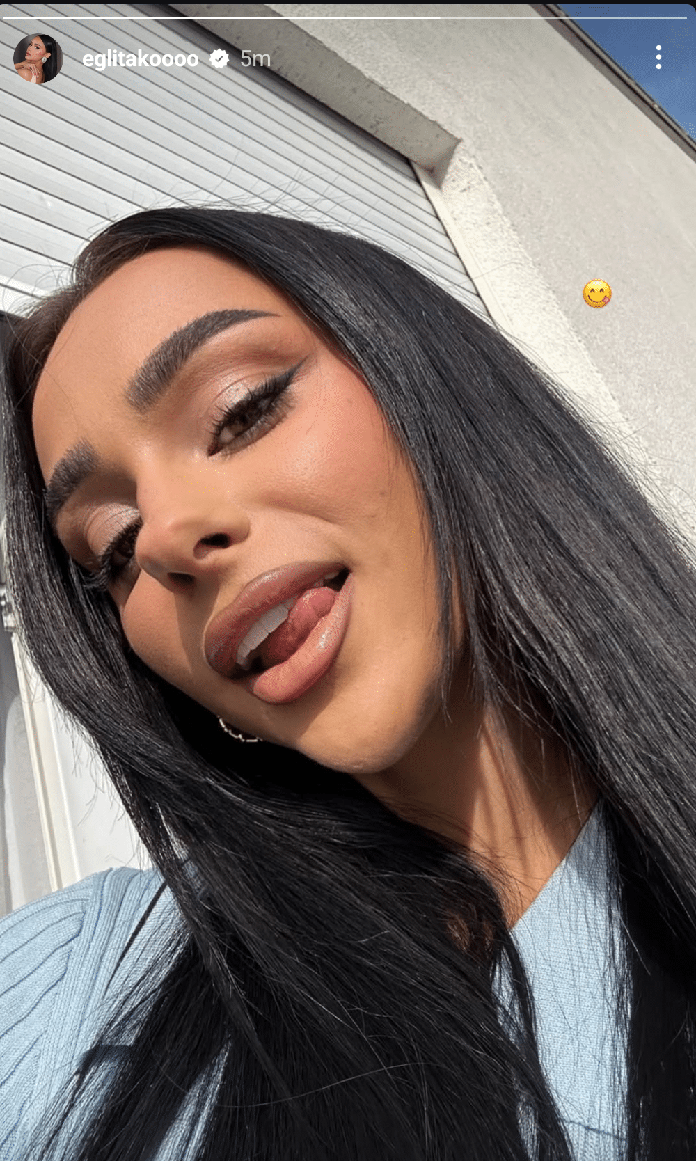 Në foto, Egli shfaqet e buzëqeshur dhe me vetëbesim, ndërsa menjëherë kanë nisur komentet e ndjekësve që lidhen me marrëdhënien e saj me Gjestin.