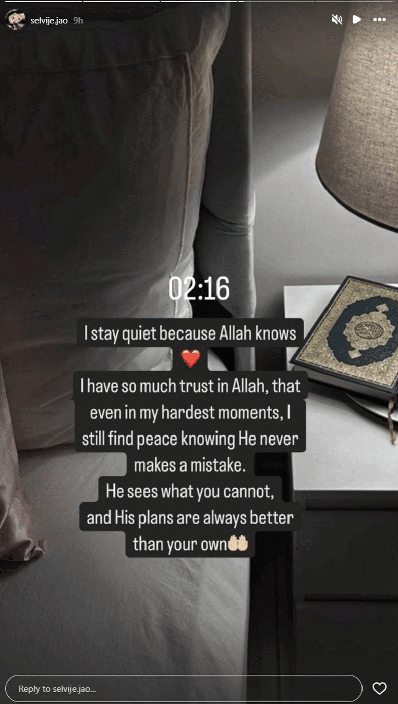 Ndërsa Shpati zgjodhi të shprehë emocionet e tij përmes muzikës, Selvija publikoi një mesazh shpirtëror, duke ndarë një foto të Kuranit të shenjtë dhe duke shkruar: