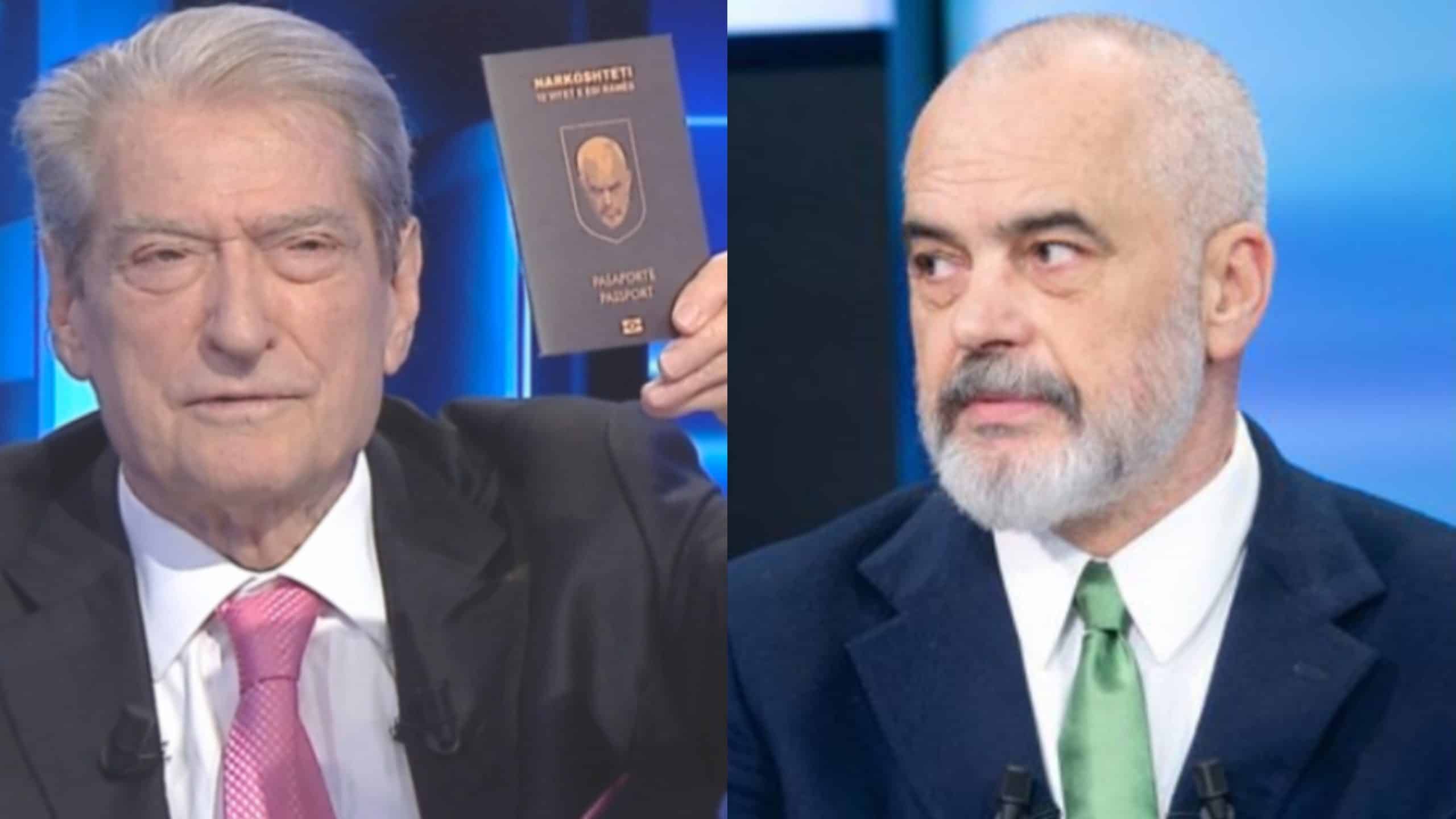 Sali Berisha: Ai ka zgjedhur të premten për të ardhur këtu vetëm. Pasi unë e kam ftuar kudo. Atëherë do bëjmë këtë. Ose unë do të mbledh dhjetra mijëra të rinj protestë rreth Klanit si për praninë e diktatorit në studio. Unë kam dhuratën time për të. Këtë pasaportë, të lutem do t’ja japësh si dhuratë nga unë nesër që e ke në studio. Narkoshteti, pasaporta. Jepja pasaportën.