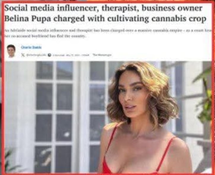 Belina Pupa, terapiste dhe influencuese e njohur në rrjetet sociale, është përballur me drejtësinë në Australi pasi u akuzua për kultivim të 43 bimëve kanabisi në një pronë në Ascot Park, Adelaide.