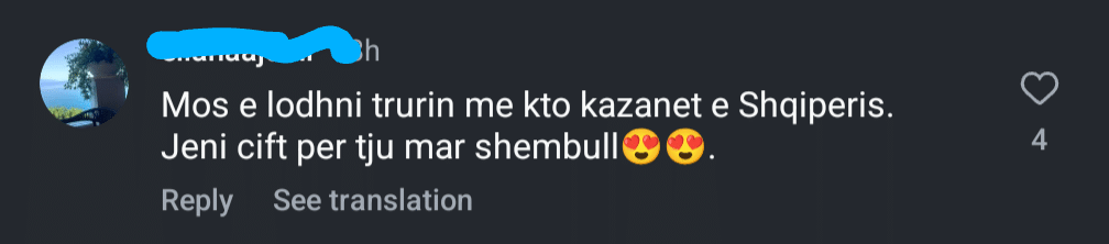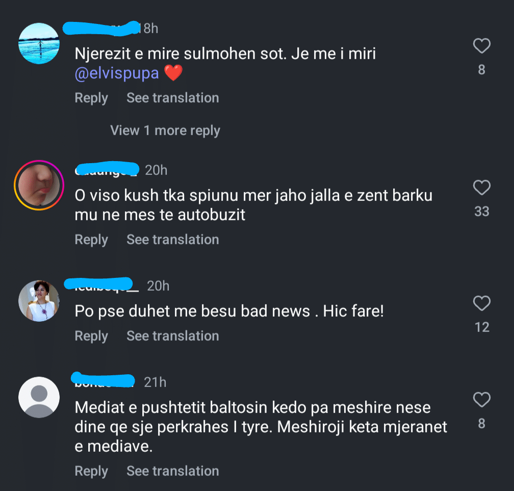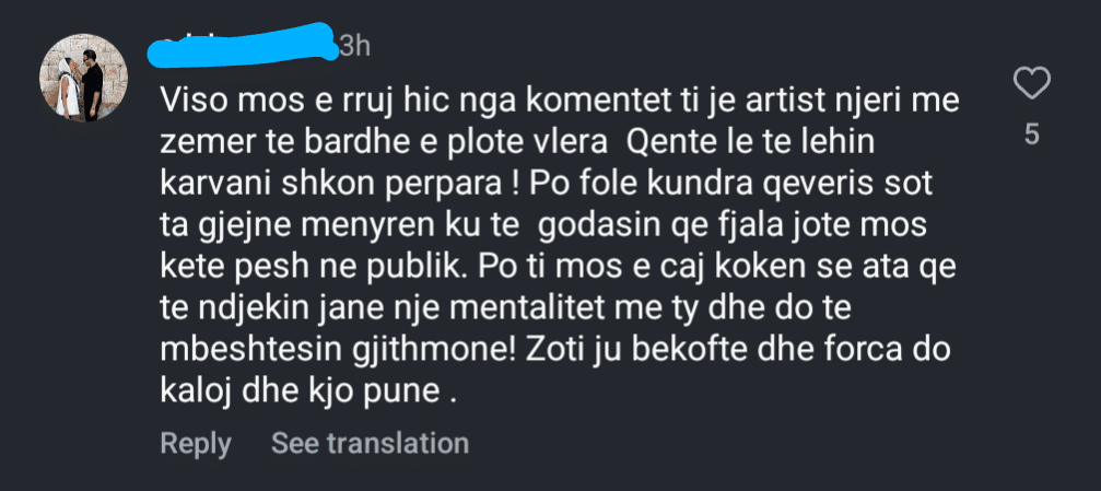 Komentet e shumta që po shtohen në këtë postim pas publikimit të ngjarjes, shprehin hapur përkrahjen për aktorin. Madje, një komentues i shkon situatës më thellë, duke akuzuar qeverinë shqiptare se është ajo që fshihet pas kësaj ngjarjeje.