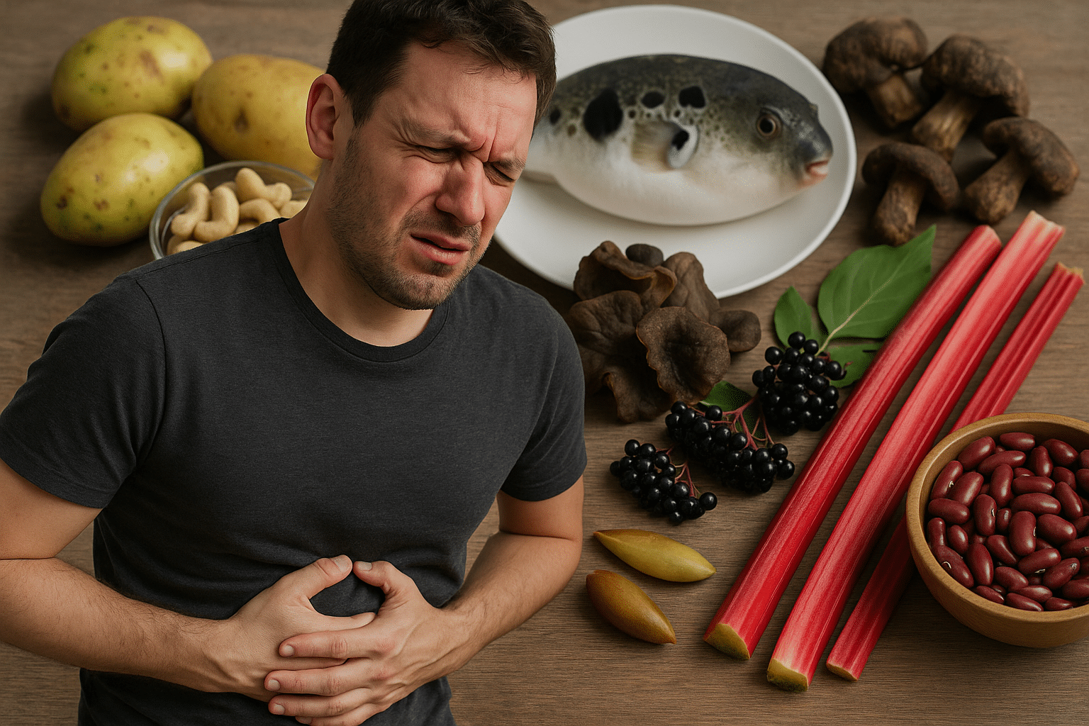 Fasulet e kuqe të papërpunuara, gjethet e rrebarbarit dhe manat e egra (elderberry) janë të rrezikshme në gjendjen e tyre të papërpunuar.