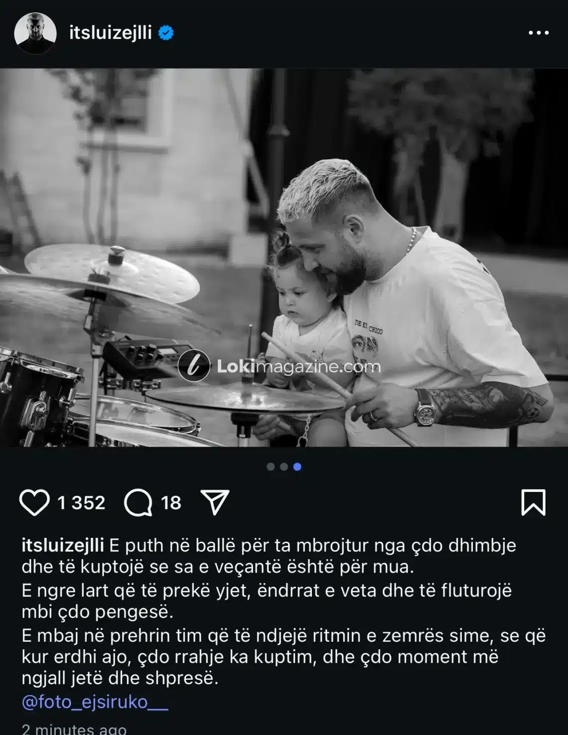 Në krah të fotos, Luizi ka shkruar një tekst prekës, ku shpreh ndjenjat e tij të thella si baba: