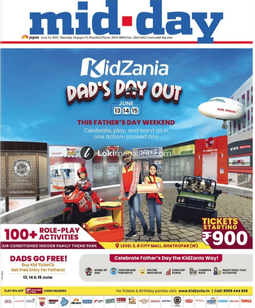 Reklama u publikua të enjten në gazetën Mid-Day, duke promovuar një aktivitet për fundjavën e Ditës së Babait nga qendra edukative për fëmijë KidZania.