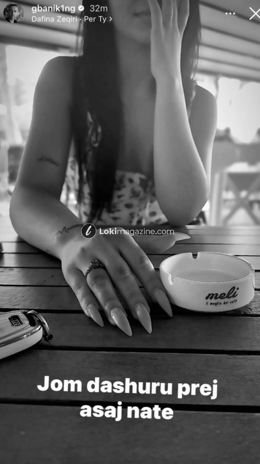 Në mbishkrimin që e shoqëron imazhin, G Bani shkruan: “Jom dashuru prej asaj nate”, ndërsa në sfond dëgjohet kënga “Për Ty” nga Dafina Zeqiri.