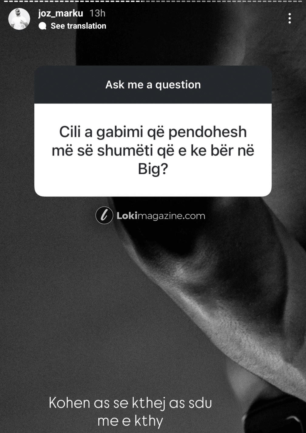 “Cili është gabimi që pendohesh më shumë që e ke bërë në Big Brother VIP?”– ishte kjo një nga pyetjet që Joz Marku mori në pyetësorin e organizuar në llogarinë e tij në Instagram.