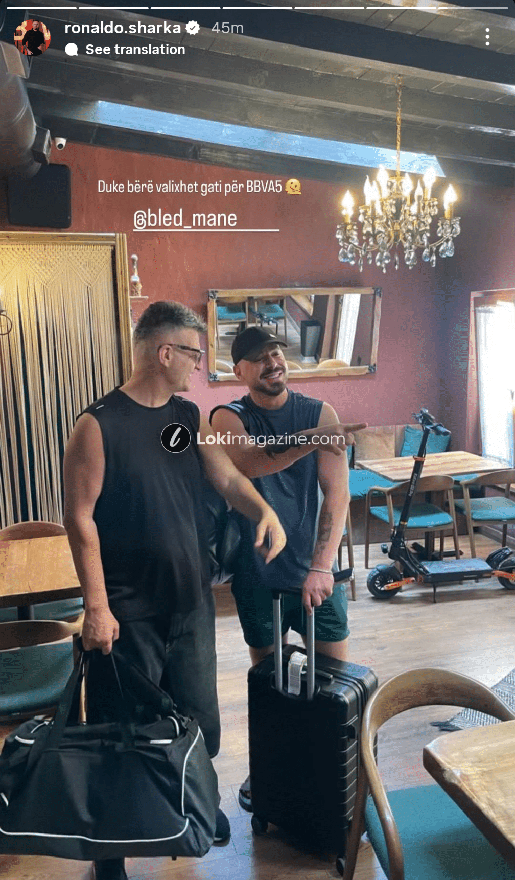 Ai shfaqet krah Bled Manes dhe shkruan: “Duke bërë valixhet gati për BBVA 5″, ndërsa në foto shihen edhe disa valixhe.