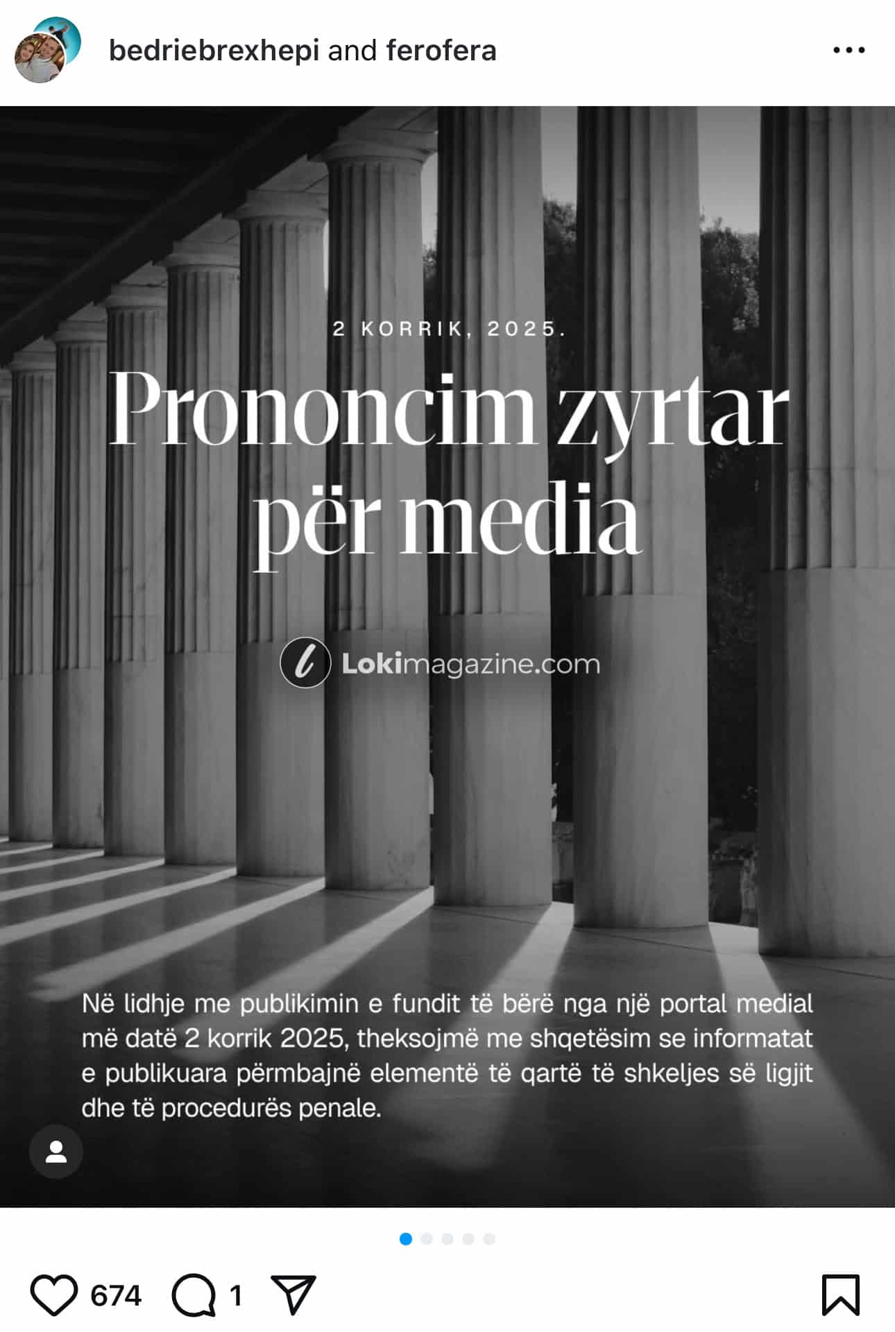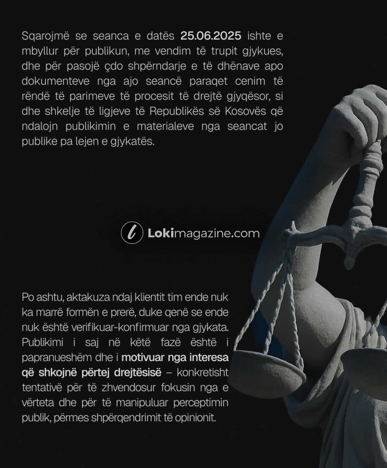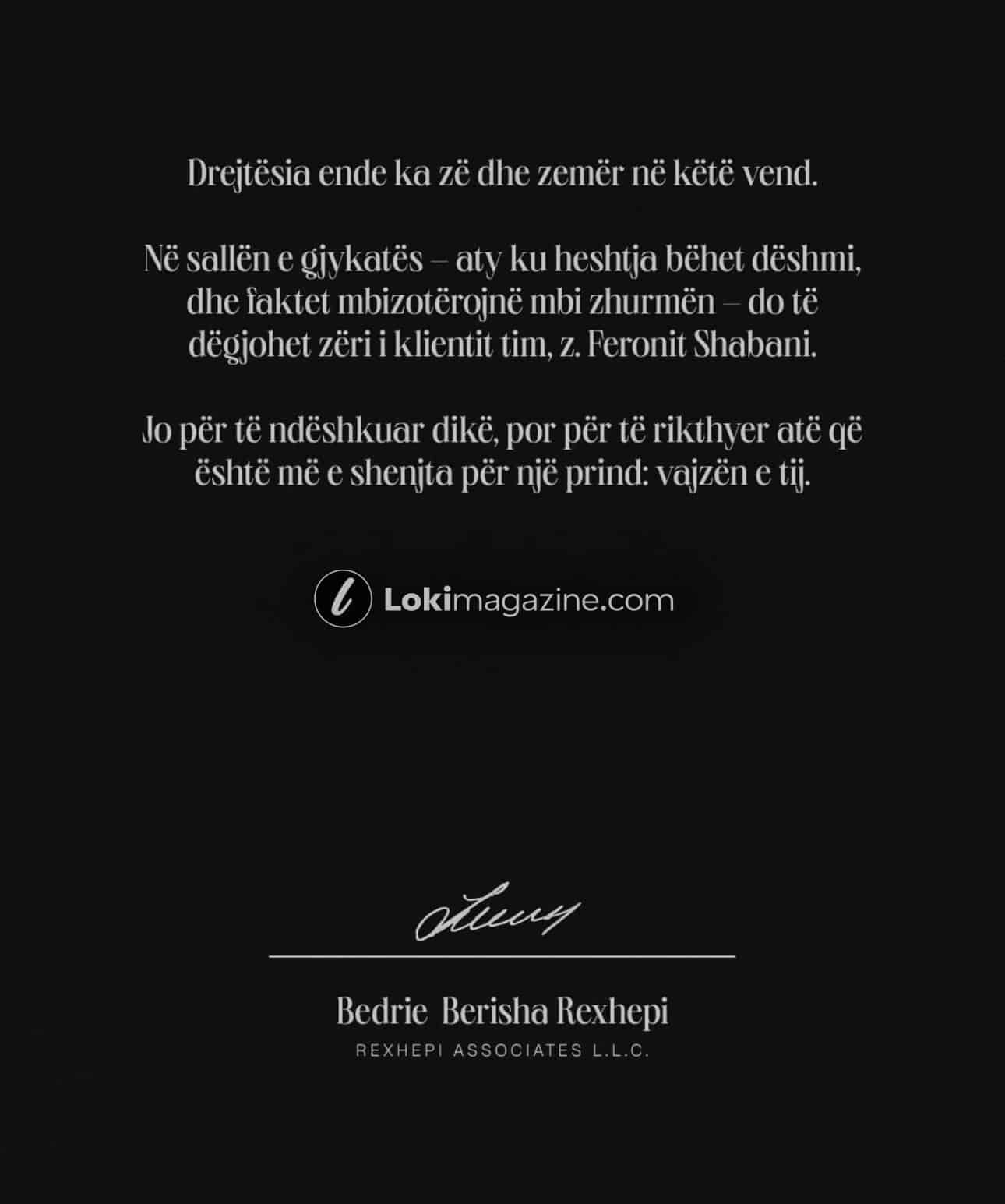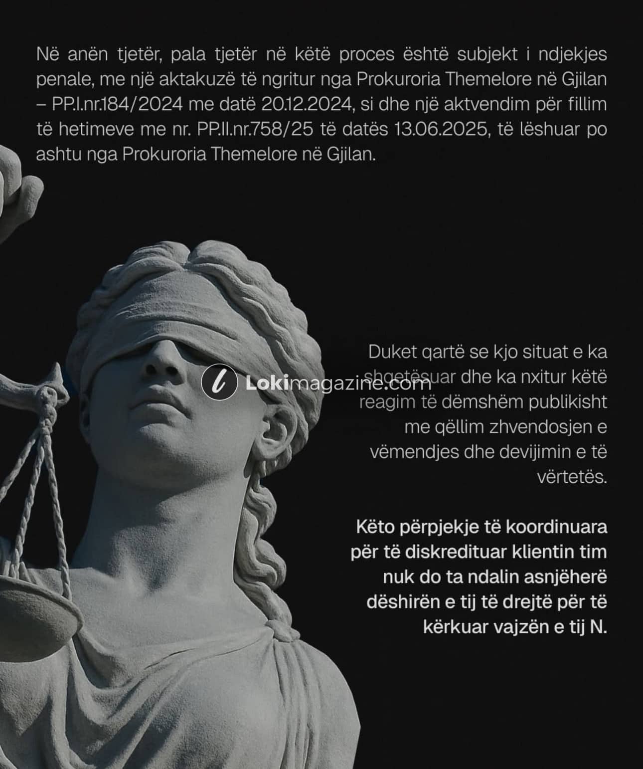 Përmes një deklarate zyrtare të shpërndarë në Instagram dhe nënshkruar nga avokatja e tij mbrojtëse, Bedrie Berisha Rexhepi, ai ka shprehur shqetësimin për mënyrën si është trajtuar rasti në publik.