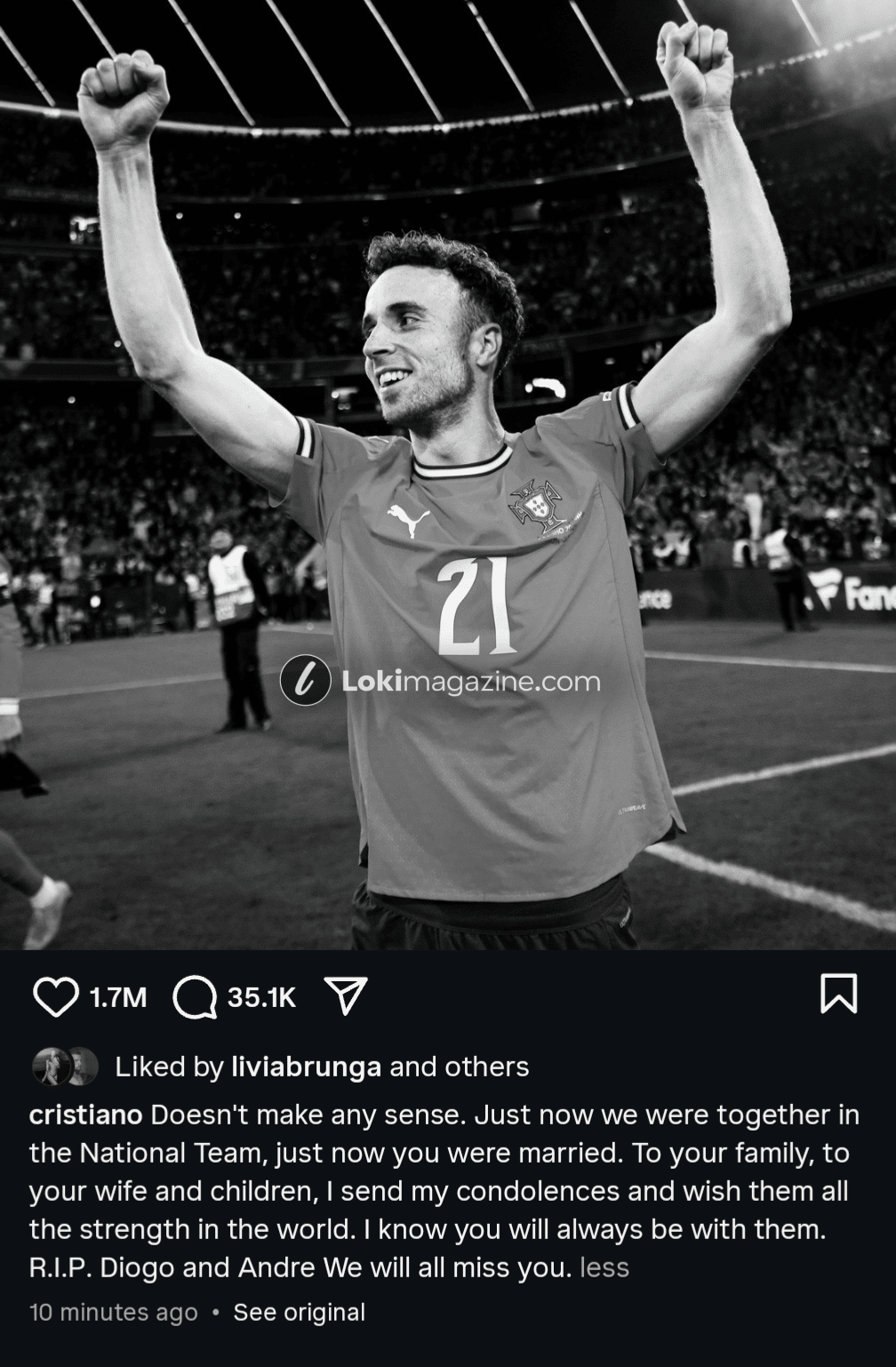 Reagimi i Ronaldos ka prekur mijëra ndjekës në mbarë botën, duke reflektuar dhimbjen që ka përfshirë komunitetin futbollistik pas humbjes së dy vëllezërve Jota.