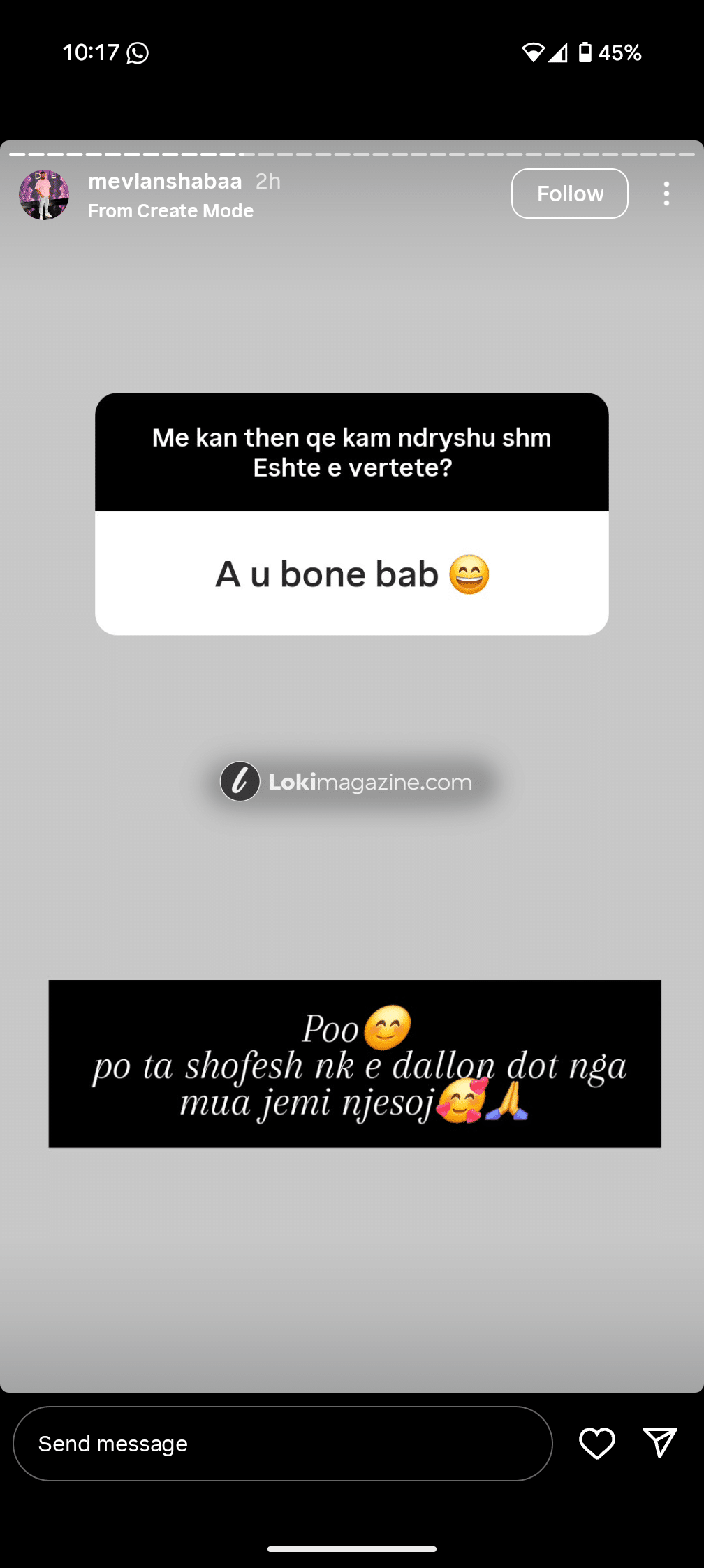 I pyetur nga një ndjekës nëse është bërë baba, Mevlani u përgjigj: “Po. Po ta shohësh nuk e dallon dot nga mua. Jemi njësoj”.