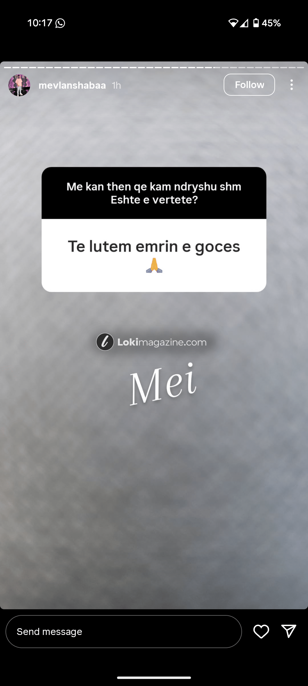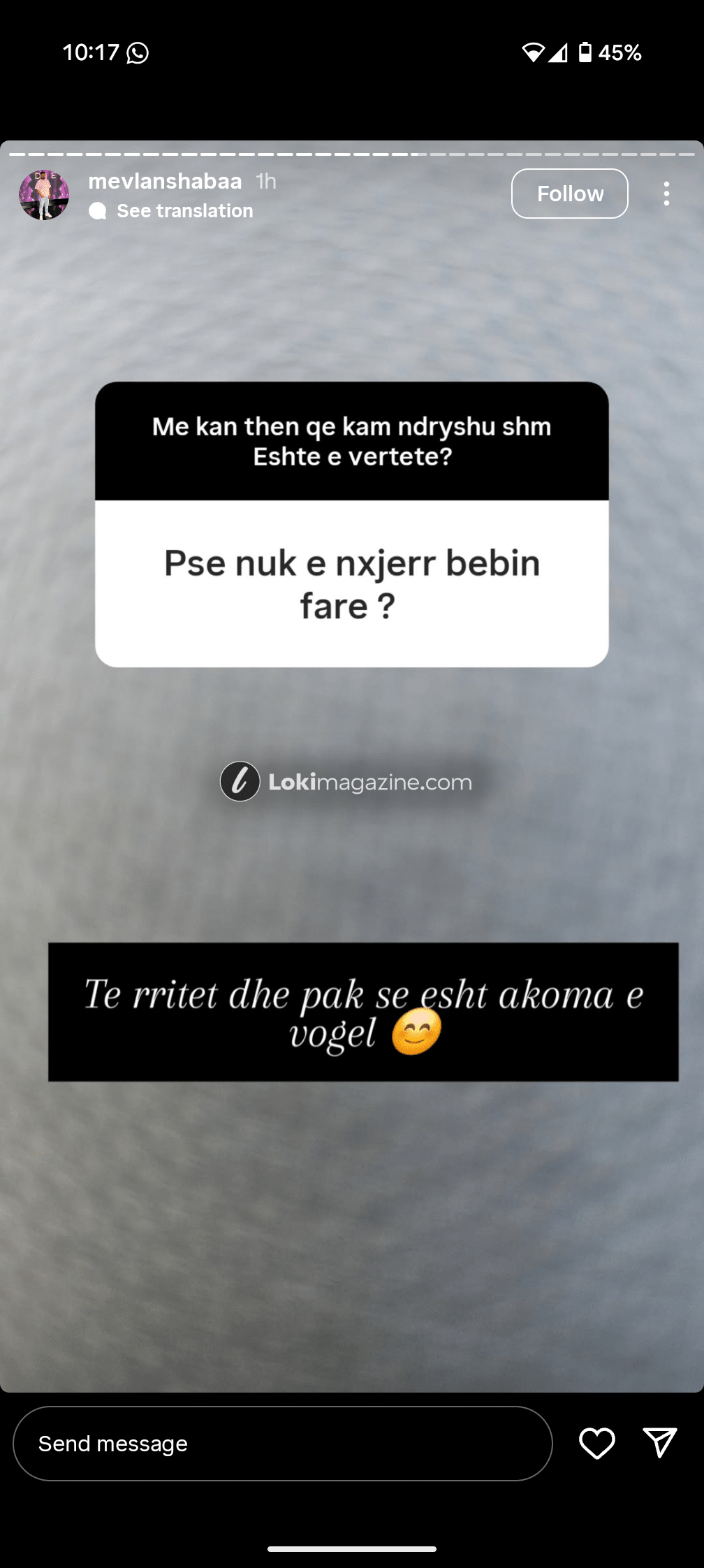 I pyetur se përse nuk e ka publikuar ende një foto të bebit, Mevlani tha: Të rritet edhe pak se është akoma e vogël.