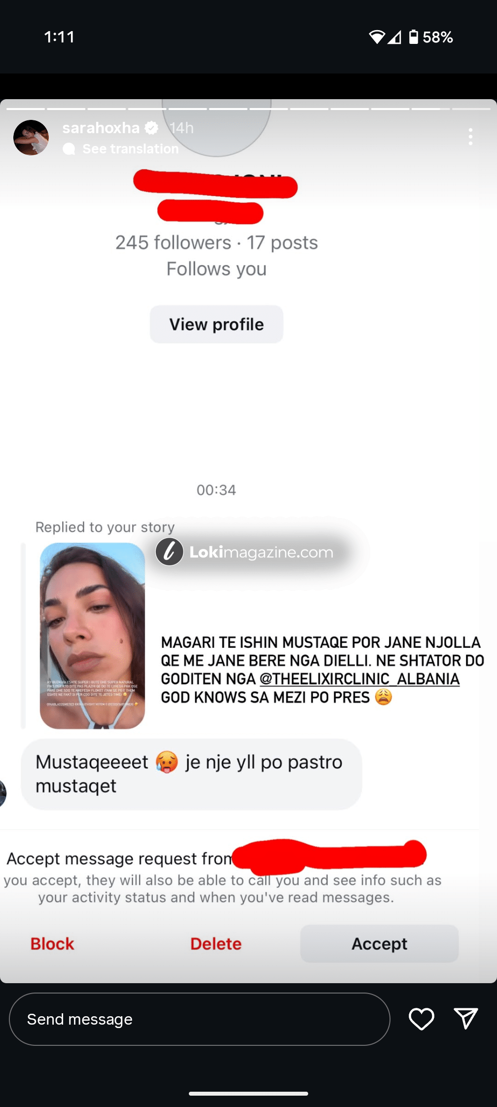 “Mustaqet. Pastro mustaqet”, i shkroi një ndjekës Sarës, koment të cilin ajo nuk e la pa një përgjigje.
