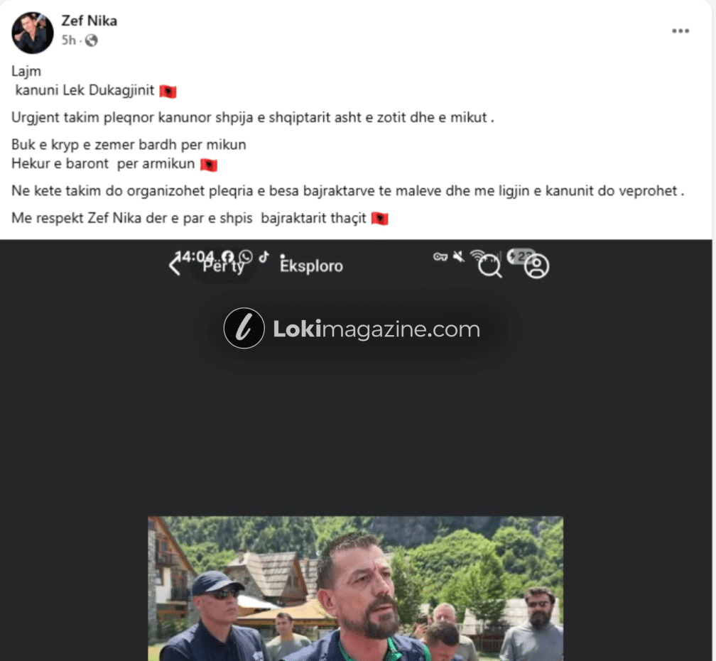 Një thirrje urgjente pleqnore është lëshuar nga Zef Nika, dera e parë e shtëpisë së bajraktarit të Thaçit, për një mbledhje të jashtëzakonshme në bazë të ligjit të Kanunit të Lekë Dukagjinit.