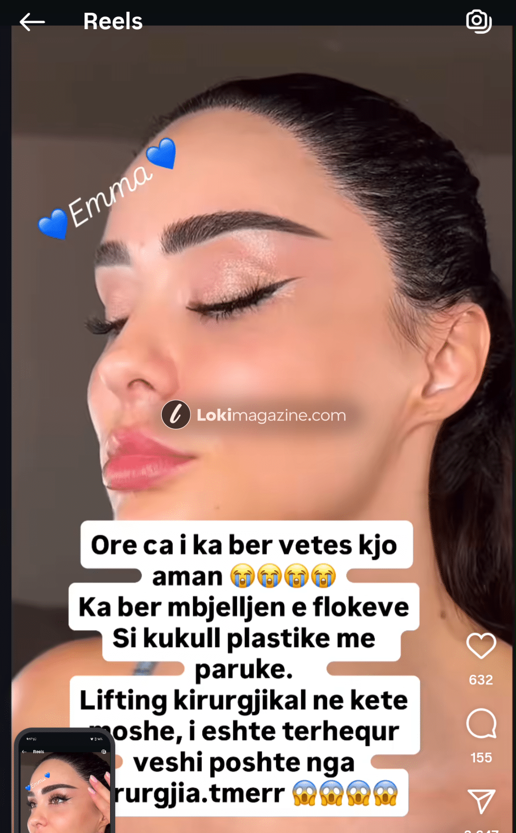 “Ka bërë mbjellje flokësh. Si kukull plastike me paruke. Lifting kirurgjikal në këtë moshë, i është tërhequr veshi poshtë nga kirurgjia. Tmerr”, thuhet mes tjerash në përshkrimin që ka shoqëruar pamjet.