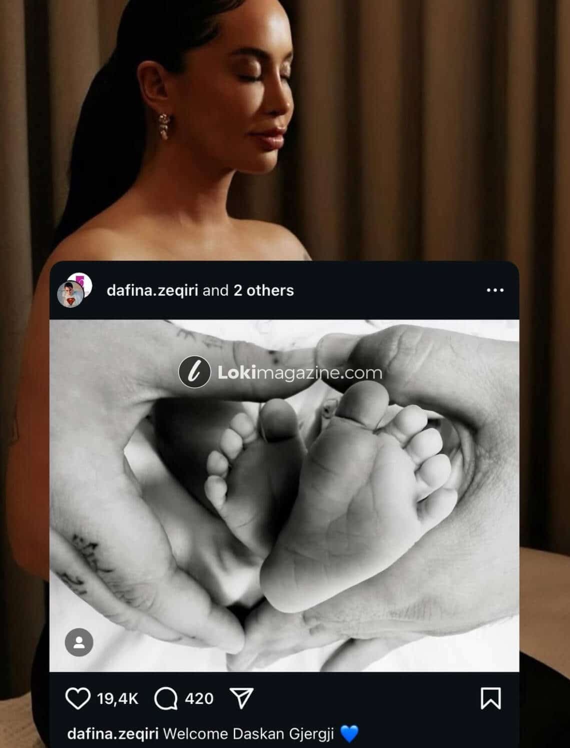 Lajmin e ka ndarë vetë artistja përmes një postimi në Instagram, ku ka publikuar një foto bardh e zi me këmbët e të porsalindurit.
